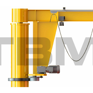 360°旋臂吊回转轴直接放置悬臂吊的圆管上,回转和立柱同心。供电可通过360集电环形式可以做到360度无限循环的旋转。也可以外置回转限位,调节旋臂吊的回转角度。 |