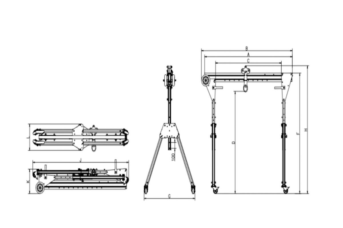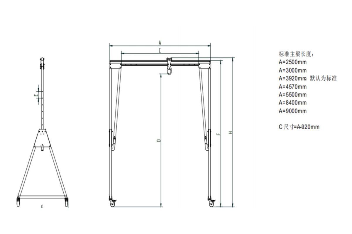 | 起重量 | 型号 | 尺时参数mm) | 自重kG 支腿*2+主梁*A |